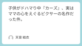 子供がドハマり中『カーズ』、実はママの心をえぐるピクサーの名作だった件。